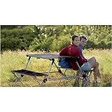 Perfect for bringing along on car camping trips or picnics at the park, the Kelsyus Portable Outdoor Table sets up quickly and folds down easily. It features a strong steel frame construction and durable, breathable mesh seats and tabletop, four integrated cup holders, and elastic straps at corners prevent napkins and utensils from blowing away in the wind. It can sit a family of four and can hold a maximum weight of 800 pounds (400 pounds per bench). When finished, it folds down to fit in its included storage/carry bag.